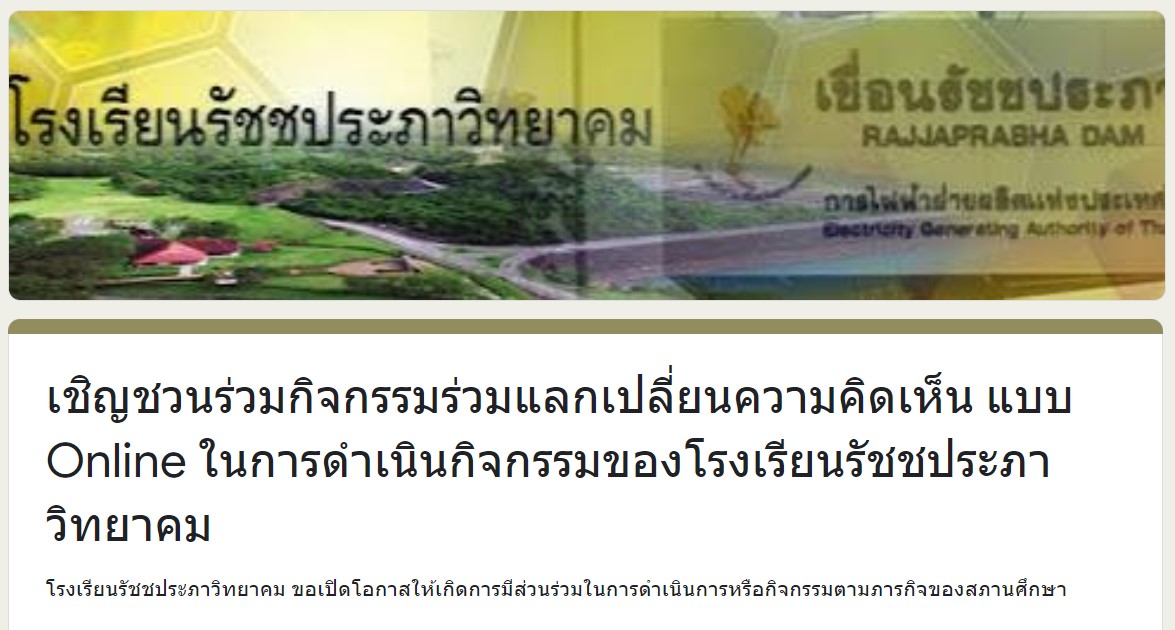 ![]() รูปภาพ กิจกรรมแลกเปลี่ยนความคิดเห็น ศรร.โรงเรียนรัชชประภาวิทยาคม |