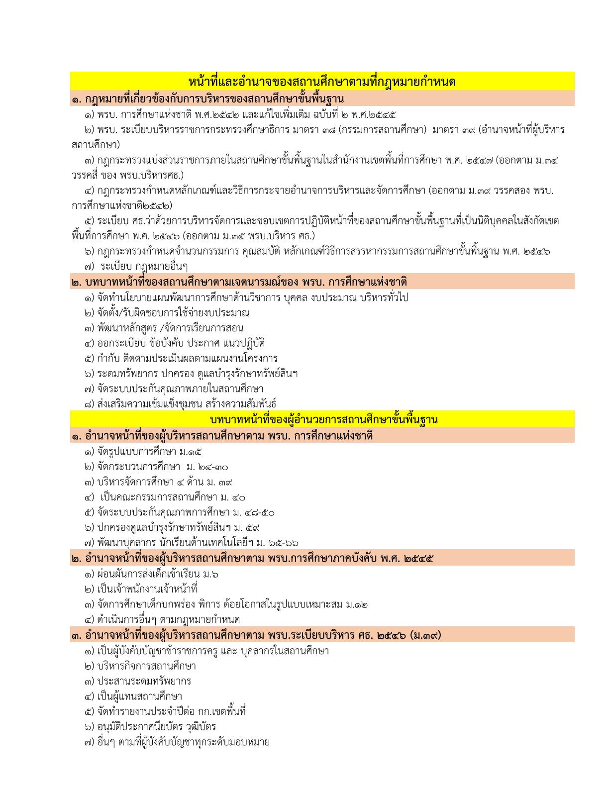 หน้าที่และอำนาจของสถานศึกษาตามที่กฎหมายกำหนด (คลิกชม มุมมอง แบบ PDF)