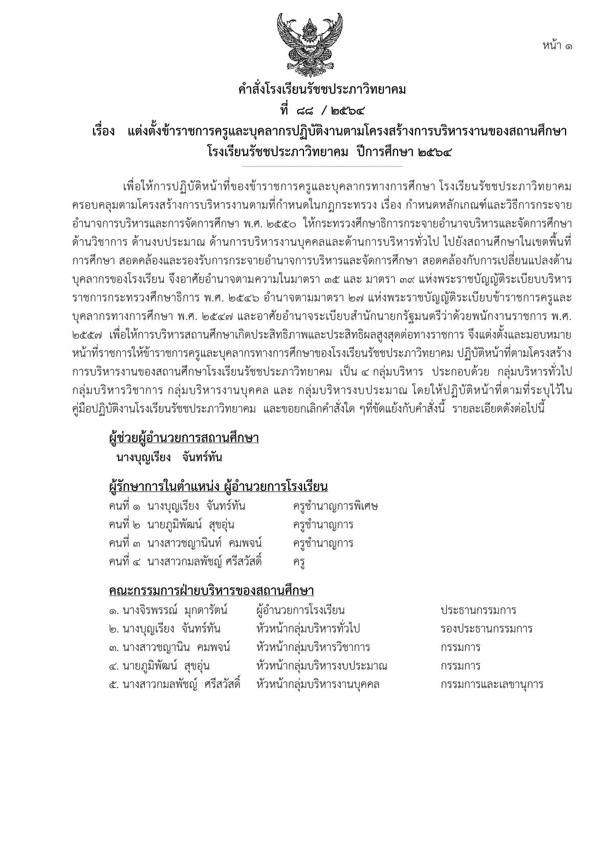 คำสั่งโรงเรียนรัชชประภาวิทยาคม ที่ 117/2565 เรื่องแต่งตั้งข้าราชการครูและบุคลากรปฏิบัติหน้าที่ตามโครงสร้าง (คลิกชม มุมมอง แบบ PDF)
