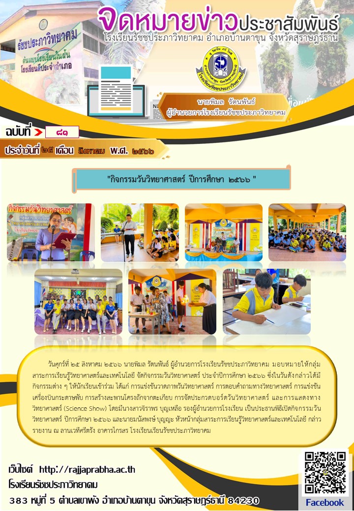 ฉบับที่ 81 กิจกรรมวันวิทยาศาสตร์ ปีการศึกษา 2566
