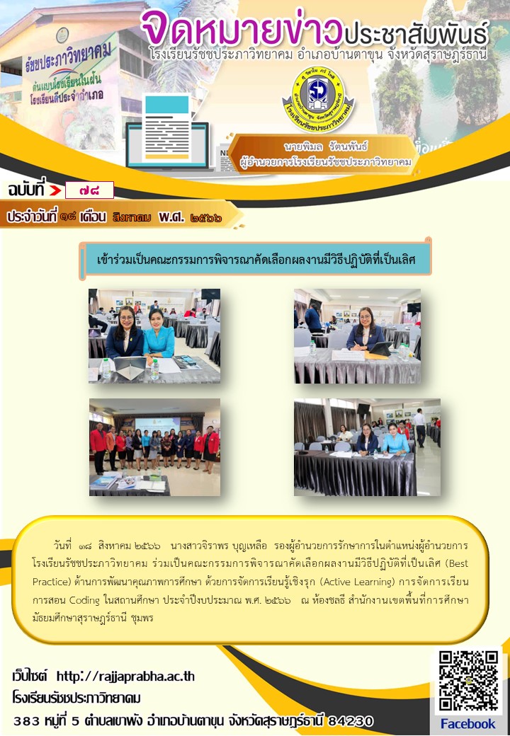 ฉบับที่ 78 ร่วมเป็นคณะกรรมการพิจารณาคัดเลือกผลงานมีวิธีปฏิบัติที่เป็นเลิศ