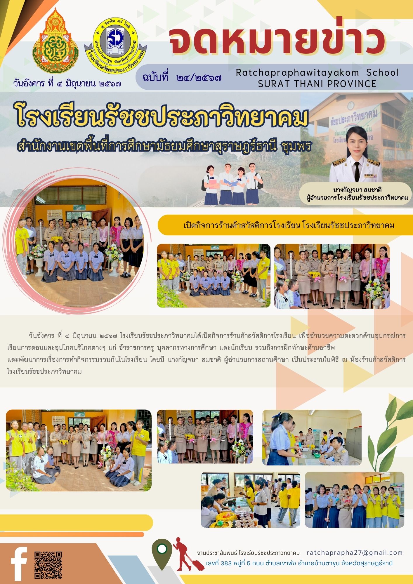 ฉบับที่ 24 เปิดกิจการร้านค้าสวัสดิการโรงเรียน-โรงเรียนรัชชประภาวิทยาคม