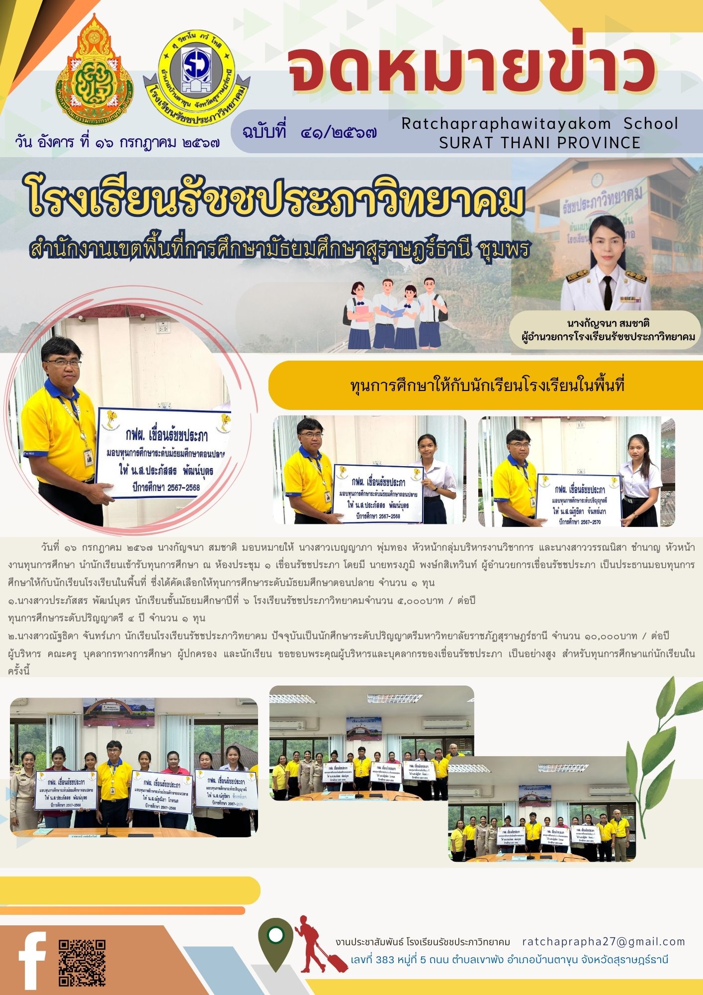 ฉบับที่ 41 ทุนการศึกษาให้กับนักเรียนโรงเรียนในพื้นที่